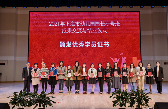 11月5日,2021年上海市幼儿园园长研修班成果交流与结业仪式在学校大礼堂成功举办。结业仪式上,来自16个区的上海市第五期骨干园长研修班,第二期初任园长研修班的144名成员们领取了研修结业证书、国际课程证书,44名园长被评为优秀学员。上海市教育委员会人事处副处长张瑾莅临指导。参加活动的还有来自兄弟院校和合作单位领导及专业负责人,学校董事会及党政监领导,学前教育学院教师代表。