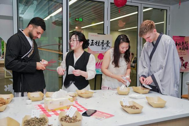 中草药DIY区异常火爆,张云老师悉心为每一位外籍嘉宾讲解每种中草药的名称及对应的功效,听了张云老师的讲解,外籍嘉宾听后纷纷表示很感兴趣。很快,中草药材料包就供不应求。
