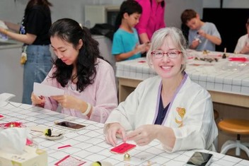 在中秋鱼灯冰箱贴制作和拓印福字风铃区,外教老师们也积极参与,他们被这些充满中国传统韵味的制作活动深深吸引,眼神中透露出好奇与兴奋。一位外教老师感慨地说:“这样的活动太有意义了,它让我们更加贴近中国,也让我们对中国文化有了更深层次的认知和尊重。我们会把这些美好的经历和作品带回自己的国家,向更多的人讲述中国故事。”