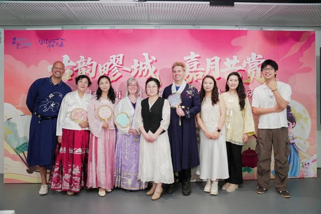 9月21日晚,由嘉定区人才工作局主办、同济大学承办的“古韵疁城·嘉月共赏”外国专家中秋传统文化体验活动在同济大学嘉定校区举行。来自区内科研院所、重点企业50余名外籍专家及其家属应邀参加。我校国际交流处选派外籍教师Scott、Alisa Ashley、Jason Silva、Chen Qian及中方教师张云、李甜甜、赵诗佳、钱弈淳组成双语服务团队,全程提供翻译讲解与流程协调,保障活动顺利开展。