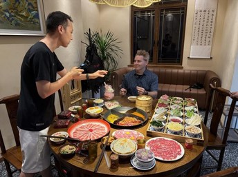 离开远香湖,Scott来到了西云楼。他首先漫步在西云楼的街道上,欣赏着这里独特的建筑风貌。既有传统中式建筑的典雅韵味,飞檐斗拱、雕花门窗仿佛在诉说着过去的故事;又融入了现代元素,现代化的灯光设计和舒适的内部布局为这里增添了一份时尚与便捷。接着,他走进了北步园火锅店,开启了一场舌尖上的文化体验。